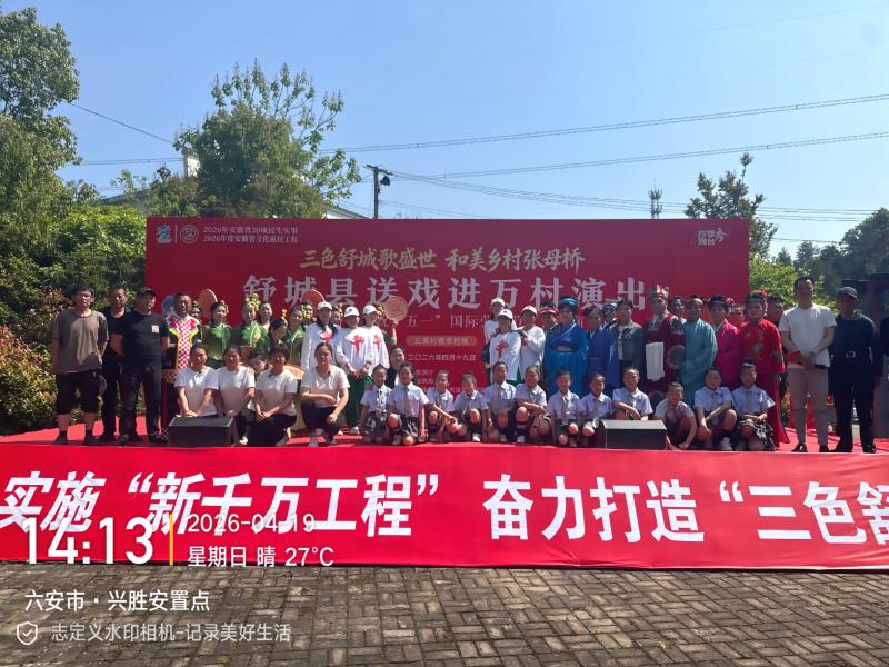 春风送暖,文化惠民。4月19日下午,张母桥镇白果村文化广场上人头攒动、掌声如潮,由安徽省文化和旅游厅主办,六安市文化和旅游局承办,舒城县文化和旅游体育局等单位实施的“三色舒城歌盛世,和美乡村张母桥”送戏进万村暨庆祝“五一”国际劳动节文艺汇演在这里隆重举行。活动将高品质的文化大餐送到百姓家门口,为即将到来的“五一”国际劳动节增添了浓厚的节日氛围。