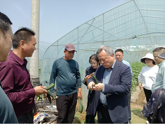 随后,潘灿平院士一行深入园区果蔬大棚开展实地指导。在蔬菜种植区,院士详细察看植物健康激活剂对比试验开展情况,现场核验应用成效。试验结果表明,应用相关技术可显著减少化肥农药使用量,提升农产品抗病能力,改善外观品相与食用口感,有力推动绿色高效精准健康栽培技术落地。