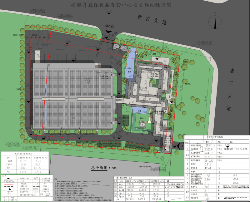 附:安徽舟翼保税品直营中心项目规划总平面图、现场核实照片