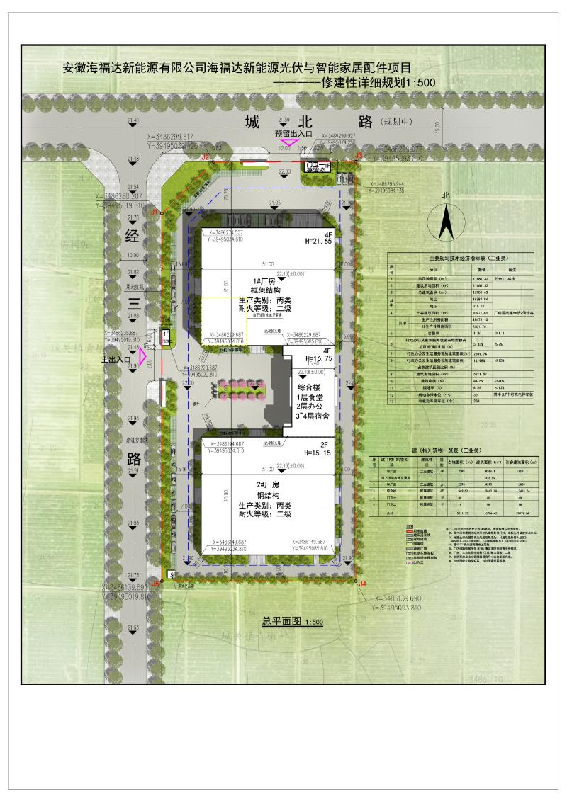 安徽海福达新能源有限公司海福达新能源光伏与智能家居配件项目用地位于安徽舒城经济开发区(城关园区)城北路与经三路交叉口东南侧地块(具体位置见附图),规划总用地面积11661.32m2,规划计容总建筑面积20977.84m2。