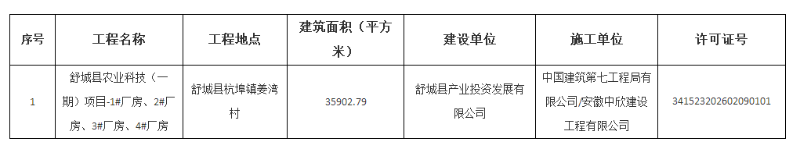 舒城县住建局2026年2月份建筑工程【施工许可证】发放公告
