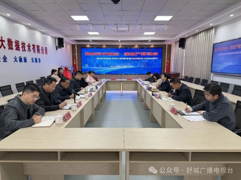 会上,邱前东代表舒城县委、县政府对胡林娜一行的到来表示欢迎,并详细介绍了舒城县近年来的产业布局和人才工作开展情况,表示将全力支持校地企合作。皖西学院金融与数学学院和安徽云联大数据技术有限公司签署了合作协议,并举行“皖西学院大学生就业实习基地”揭牌仪式。