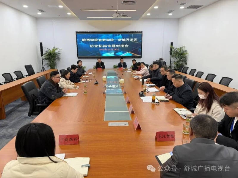 12月10日上午,皖西学院党委副书记胡林娜率队到我县开展“访企拓岗”活动。舒城县委常委、组织部部长邱前东,皖西学院金融与数学学院副院长袁国军,皖西学院金融与数学学院党委副书记、纪委书记邱红霞以及舒城县委人才工作局、县人社局、县经济开发区等相关单位负责人等参加活动。
