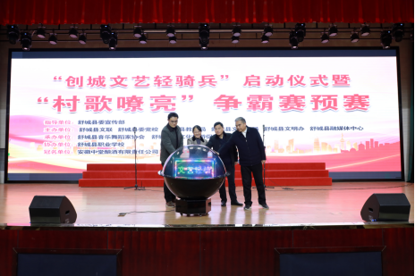 12月12日下午,我县举办“创城文艺轻骑兵”启动仪式暨“村歌嘹亮”争霸赛预赛。县领导汪健、胡久松、杨培、朱传旭等出席仪式。