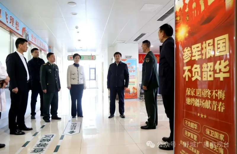 1月15日上午,市人大常委会副主任、县委书记赵珞,县委副书记、县长胡敏来到舒城县征兵体检站检查指导2026年上半年征兵体检工作。县委副书记张辉,县委常委、县人武部政委刘全岭,县人武部部长孙旭东等陪同。