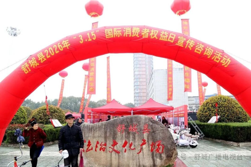 3月15日上午,我县在舒怡广场开展2026年“3·15”国际消费者权益日宣传咨询活动。向广大市民宣传消费者权益保护相关法律法规。县委常委、副县长张蕾,县消保委主任吴家文等到现场指导。