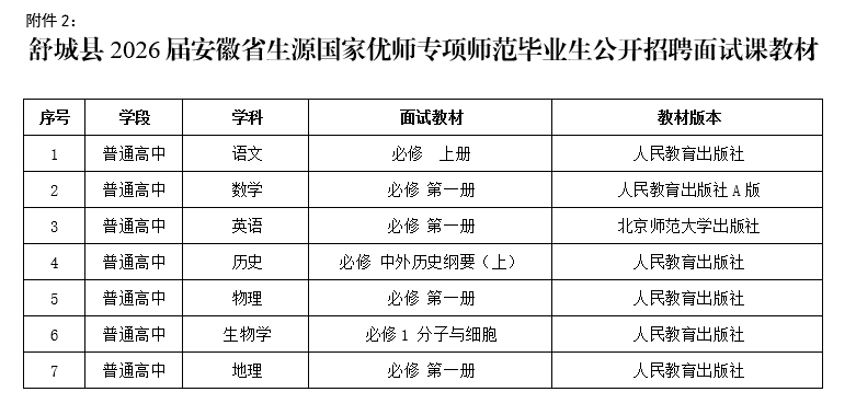 2.舒城县2026届安徽省生源国家优师专项师范毕业生公开招聘面试课教材