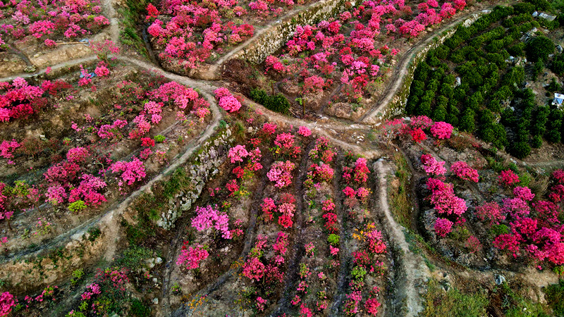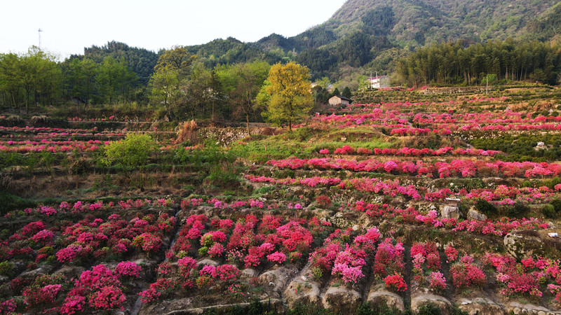 4月11日清晨,晓天镇苏平村甜竹园村民组一处人工培育的映山红火红热烈,鲜艳欲滴。