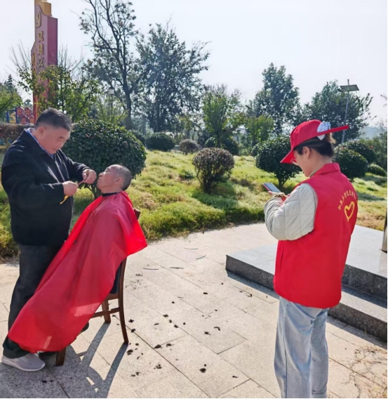 爱心义剪,传递清爽关怀: 在村党群服务中心临时设立的“爱心发屋”里,具备理发技能的志愿者胡师傅耐心询问老人们的发型需求,一边熟练地操作着剪刀、推子,一边与老人们唠着家常。伴随着细碎的剪刀声,老人们原本有些凌乱的头发变得整齐利落,精神面貌焕然一新。理完发的陈大爷照着镜子,脸上露出了满意的笑容,连声称赞:“这手艺真好!村里想得太周到了,重阳节还能在家门口免费理个发,感觉人都精神多了!”