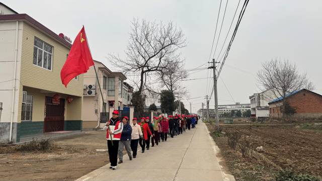 冬阳暖照乡间路,党群同心话治理。在五里村中心组道路上,党旗飘扬,笑语欢畅。村党员、网格员和部分村民结伴而行,头戴小红帽,环绕村主干道健走,便说边笑,边笑边议。“流动红”成为冬日乡村田野上一道夺目“风景”。