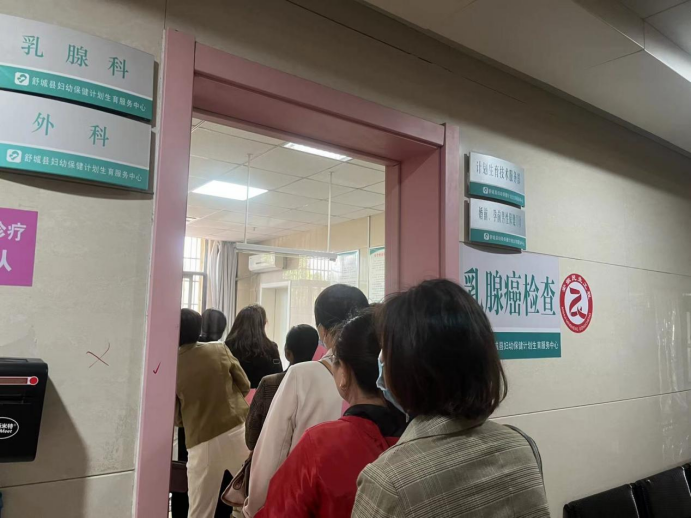 4月27日,高峰乡卫健办、相关村计生专干带领42名适龄妇女到舒城县妇幼保健计划生育服务中心乳腺癌检查区域,有序排队、登记、填表,分项依次进行检查,医护人员耐心地解答每一位前来咨询的妇女群众的各种疑问,给予科学、合理的诊疗指导和医学建议,讲解“两癌”的症状及预防措施、筛查的意义等健康知识。