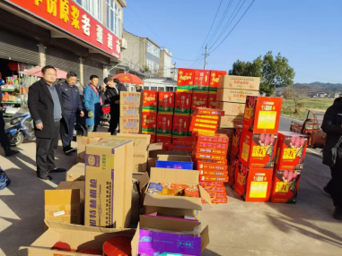全面排查,织密“防护网”。深入辖区沿街门店、重点场所进行严密排查,对辖区内可能存在非法生产、经营和违规售卖烟花爆竹的商铺开展“地毯式”排查,切实做到情况明、底数清。全镇共有68家烟花爆竹有证经营店,目前已全部排查完毕,发现6家存在安全隐患,已下发责期整改通知书,建立台账。检查过程中查处4家商店无证经营烟花爆竹,我镇已联系县应急局收缴,并进行集中销毁处理。