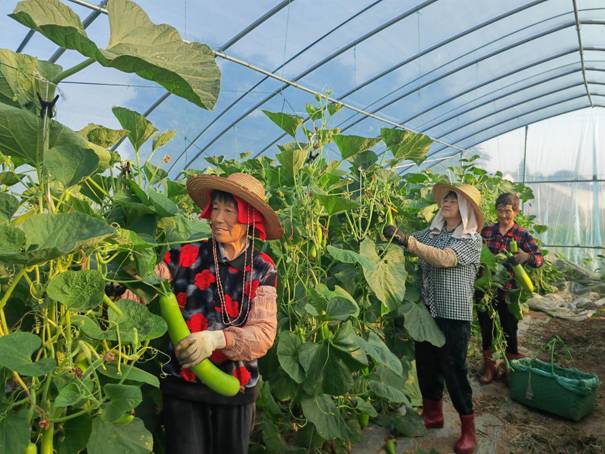 眼下,瓜果蔬菜进入采摘旺季。大棚里的黄瓜、瓠瓜、丝瓜、茄子、西红柿等长势吸睛,绿意盎然,蔬果挂枝,工人忙碌,与“三夏”的火热交相辉映。“基地管理常年需雇人工,高峰期每天20多人,都优先吸纳本村村民,平均每天都能挣70元以上。居家农民多了一条增收路径。”林绪胜表示,大棚蔬菜基地租金收入,采取村集体投资占51%、农户土地入股占49%。