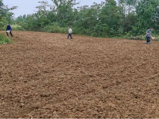 “撒播油菜种,地块一定要平坦、疏松,播撒时手里抓的种子要抖动着撒开,使之均匀分布,不会出现重籽。”在不远处的地里,棠树乡农业服务中心张德清一边操作,一边向村民讲解油菜育苗的要领。