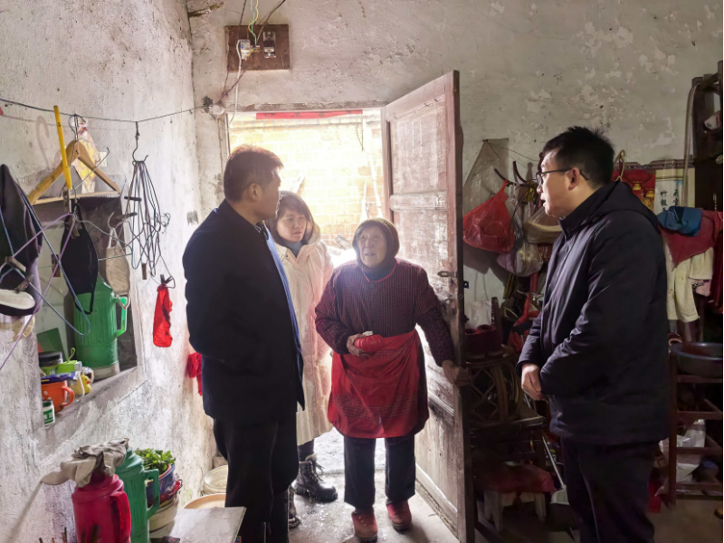 同时,镇党委政府主要负责同志带队深入桃城社区及部分村庄,开展双重关爱行动,走访慰问留守老人,细致询问其取暖及身体状况,叮嘱雪天安全注意事项。镇应急所联合相关部门开展入户排查农户住房安全,重点查看老旧房屋承重结构、屋顶积雪及用电用火安全,及时提醒并协助消除潜在隐患,确保群众住房安全。