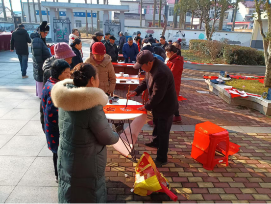另一边,义务写春联、送“福”字活动同样热闹非凡。镇文联、文旅中心、邮政分局、周瑜书画院等单位的志愿者们挥毫泼墨、笔走龙蛇,将新春的美好祝福融入一笔一画之中,一幅幅寓意吉祥、笔力遒劲的春联,一个个饱满喜庆、饱含温情的“福”字,接连送到村民手中。浓浓的年味在笔墨书香中传递,也让群众感受到了来自党和政府的深切关怀。这也是干汊河镇深化“无事”找书记多元共治、凝聚多方力量服务群众的具体体现。
