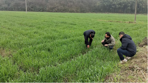 在种粮大户的小麦种植田间,农技干部们仔细查看小麦苗情、墒情和病虫害发生情况,并与种粮大户亲切交流,详细了解他们在小麦春季生产管理中遇到的实际困难和技术需求。针对当前气温回升、小麦进入返青拔节关键期的特点,农技人员现场讲解了春季小麦田间管理的核心技术要点,重点指导农户科学开展肥水管理、病虫草害防控等工作。