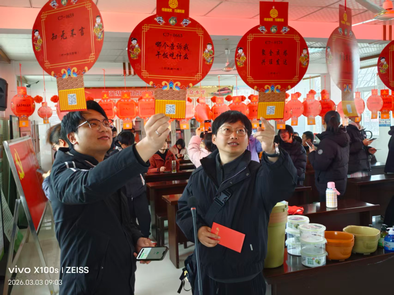 活动现场五彩斑斓的灯谜纸条随风摇曳,处处洋溢着浓浓的节味。一条条精心准备的灯谜涵盖乡村振兴、基层治理知识、动植物、民俗知识、生活常识等内容,兼具趣味性与知识性。村民们纷纷驻足,有的低头沉思、默默思索;有的三两成群、热烈讨论,时不时传来“我猜中了”的欢呼声。猜对灯谜的村民还能领取小礼品,现场气氛热烈又温馨,大家在解谜互动中领略传统文化的独特魅力,增进邻里情谊。