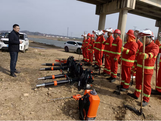 演练现场,镇分管负责人针对火情侦察、装备操作、协同扑救等关键环节提出明确要求,强调要以“时时放心不下”的责任感,抓实抓细森林防火各项工作,确保关键时刻拉得出、冲得上、打得赢。随后,镇林业站负责人结合实战需求,向队员们系统讲解风力灭火机、油锯、二号工具、水泵等灭火器材的操作要领、维护要点及使用注意事项,通过现场演示与手把手教学相结合的方式,帮助队员熟练掌握各类器材的实战应用技巧。