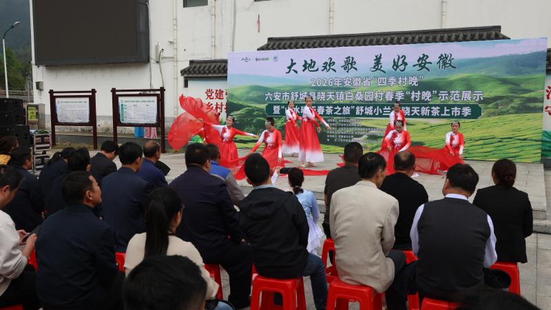 茶香幽幽,欢歌阵阵。4月15日,2026年安徽省“四季村晚”六安市舒城县晓天镇白桑园村春季“村晚”示范展示暨“山水晓天春茶之旅”舒城小兰花晓天新茶上市季活动隆重上演,一个个精彩节目轮番登场,融合庐剧、黄梅戏、器乐、舞蹈等多种形式,唱响了乡土情怀,彰显了名茶之乡风采,现场掌声不断、暖意融融。