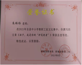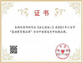 2021年10月,朱琳玲老师的课例《语文园地二》在六安市基础教育精品课评选活动中被评为市级精品课;