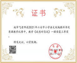 2021年5月,施华飞老师获得舒城县书法指导课比赛二等奖;