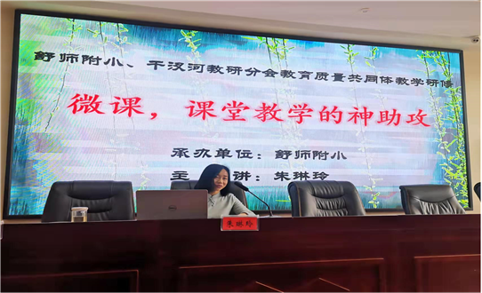 4月23日,工作室全体成员参加了教育质量共同体专题研修活动,杨红梅、朱琳玲作了关于微课制作与运用的主题讲座。