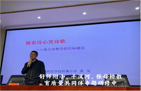 10月15日,黄军在教育质量共同体示范课暨教学研修活动中作了《循着诗心赏诗歌——谈古诗教学的目标确定》的精彩讲座。