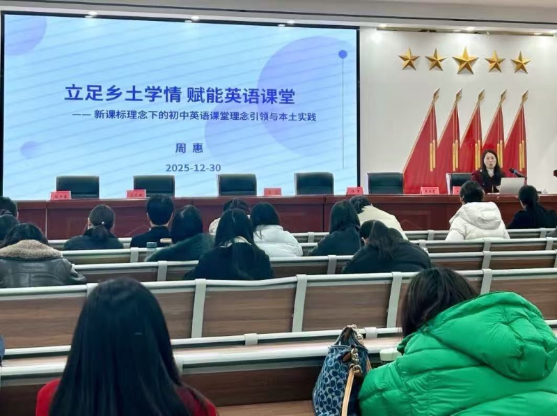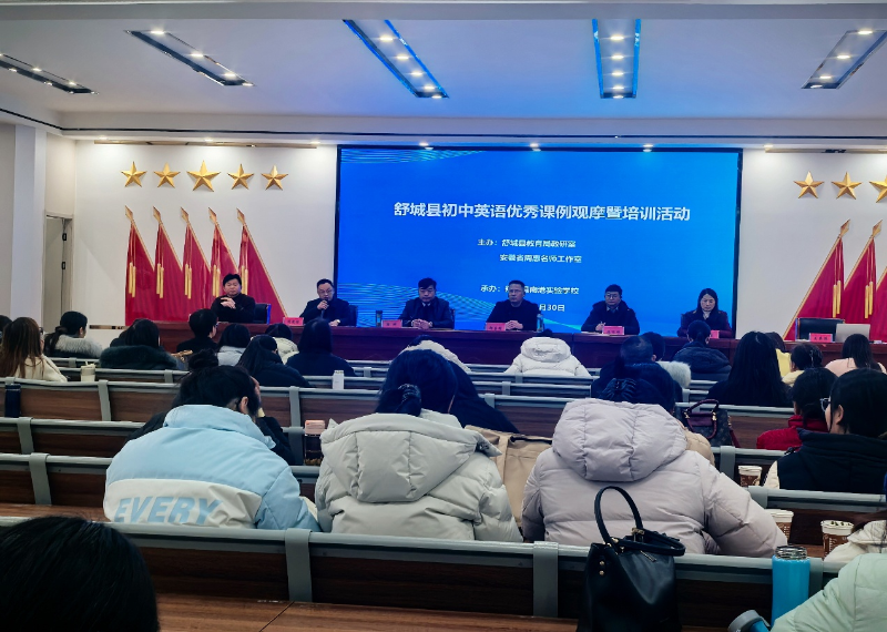 为深入贯彻《义务教育英语课程标准(2022年版)》精神,探索新教材实施路径,发挥名师工作室的示范引领作用,搭建县域教师专业交流平台,2025年12月30日下午,安徽省周惠名师工作室在南港实验学校报告厅举办舒城县初中英语优秀课例观摩暨培训活动。来自全县各初中的百余名英语教师参加本次活动。县委教育工委委员、县教研室主任郑昌财莅临指导并发表讲话,他充分肯定此次活动为城乡英语教师搭建了专业对话与共同成长的优质平台。