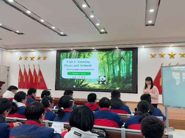 杨梦老师执教人教版八年级上册第四单元,创设“舒城文旅推介官”情境,通过“知竹—谈竹—传竹”系列任务,借助多媒体资源推动语言学习与文化理解相融合。学生在用英语演绎家乡竹文化的过程中,生动体现了“用英语讲述家乡故事”的课程育人理念。