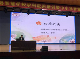 县教育局相关部门负责人出席会议并做强调讲话,并就下一步开展智慧课堂优质课评选活动进行简要布置。培训会邀请了信息技术专家对智慧课堂教学应用做介绍,智慧课堂优质课获奖老师展示获奖作品并进行说课。