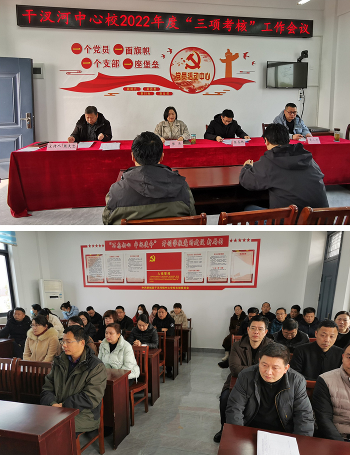 3月1日上午,县委教育工委委员、县教育局副局长张燕一行到干汊河镇中心学校开展2022年度“三项考核”工作,中心校班子成员、辖区内各小学校长、幼儿园园长及中心校全体教职工参加了考核工作会议,会议由中心校党总支书记、校长张大忠主持。