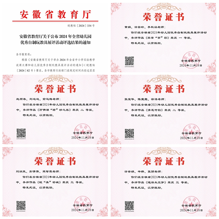 日前,安徽省教育厅公布了2024年全省幼儿园优秀自制玩教具展评活动评选结果,我县共有5件作品取得优异成绩。