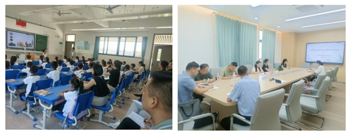顾主任的教学管理重常规、求实效,宋主任的德育工作谋传承、求突破,石主任的科研引领聚焦数字化转型,推动课堂变革与教学启航。倪晴美老师的数学课巧用希沃白板动画与游戏小程序激发兴趣,杨旖旎老师的语文课引导学生勾画事实与观点,黑板板书重点突出、节奏沉稳,两节课均体现“数字赋能+学程提效”的融合创新。