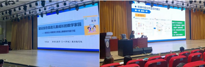 本次培训活动由六安市教育体育局主办,聚焦二年级、三年级数学新教材展开系统培训。10月25日,北师大教材主编何凤波教授、薛春波博士对北师大版二年级数学教科书上册进行单元解读及教学建议,六安市两位老师分别以课例《儿童乐园》进行说课展示和案例点评。