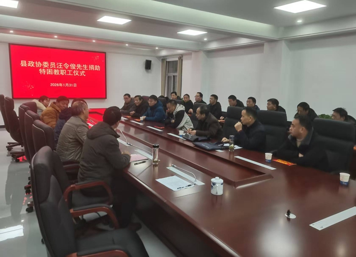 1月31日,县教育局三楼会议室内暖意融融,县政协委员、爱心企业家汪令俊捐助特困教职工资金发放仪式在此举行。县委教育工委书记、县教育局局长包训祥,县委教育工委委员张友斌,县教育工会主任李海林及相关负责人、受助教职工代表和各校负责人共同出席,见证这份延续十年的教育情怀与公益担当。