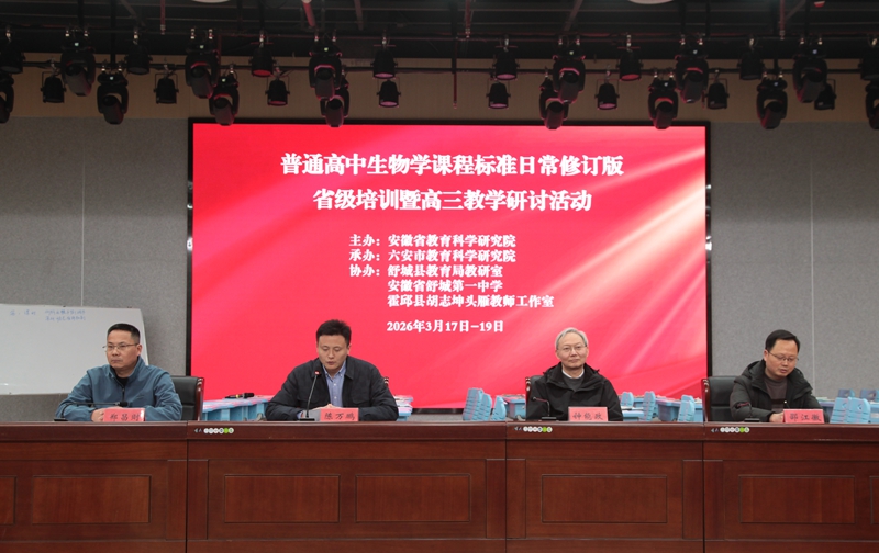 春和景明,教研赋能。3月18日至19日,由安徽省教育科学研究院主办、六安市教育教学研究室承办、安徽省舒城一中协办的“安徽省普通高中生物学课程标准日常修订版省级培训暨高三生物教学研讨活动”在舒城一中成功举办。全省300余名高中生物教育同仁齐聚文翁故里,共研新课标教学提质路径,共探高三备考高效策略。