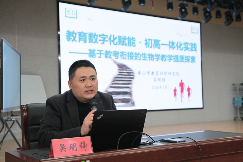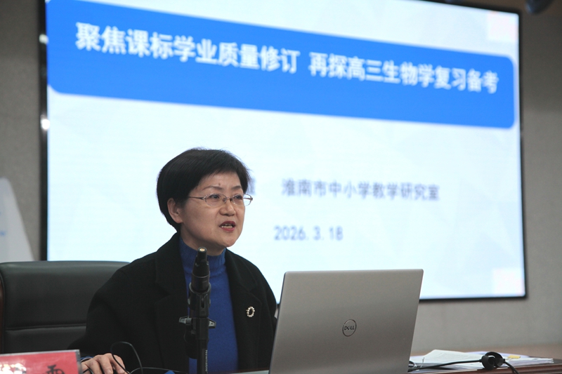 舒城一中韦宗顺老师作《高三教研组复习备考的工作规划与实施建议》专题分享,芜湖市教育科学研究所吴志强老师、淮南市中小学教学研究室赵克霞老师、黄山市教育科学研究院吴明锋老师、合肥市教育科学研究院雕玲老师、北京师范大学生命科学学院王健教授等专家,分别围绕新课标教学实施、学业质量修订、教育数字化赋能、学业水平考试命题等方向作专题讲座,为一线教师提供理论指引与实操指导。