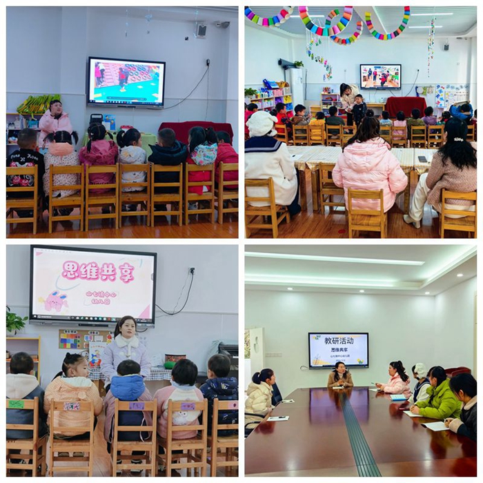 “研讨”是教师学习成长的方式之一,在观摩六个思维共享活动后,老师们集中进行了研讨、梳理,结合自身的实践经验与教育智慧,重点针对分享活动进行聚焦讨论,并提出了自己的见解,思维碰撞、智慧共享、相互学习。最后,园长钱红进行了总结和梳理,她提出思维共享的最终目的不是寻求答案,目的是引发孩子的语言表达,不断地进行观点碰撞,进而发展思辨能力和语言表达能力。