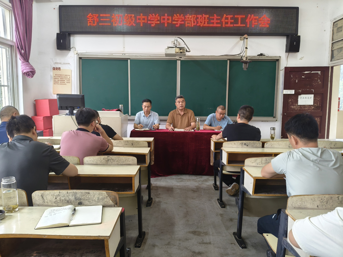 为强化班级管理效能,部署新学期重点工作,9月26日,舒三初级中学召开初中部班主任工作会议。该校党支部书记、校长张勇主持会议,领导班子成员及全体初中部班主任参加会议。