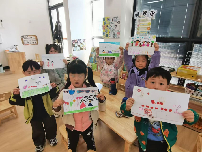 活动中,老师们以幼儿易于理解的方式,将抽象的“欺凌”概念转化为生动的讲解:通过“小恶魔做坏事”的比喻,清晰界定“欺凌是故意、重复的强对弱行为”,并结合日常场景区分“欺凌”与“偶然冲突”,让孩子们直观认识到——争抢玩具是冲突,而故意推搡、反复嘲笑则是欺凌。同时,老师们还通过情景模拟、互动问答等形式,详细讲解“语言欺凌”“行为欺凌”“关系欺凌”三种常见类型,引导幼儿主动识别身边的不友善行为。“勇敢看着对方眼睛,大声说‘不行’!”“赶紧跑到老师身边!”在“被欺凌怎么办”的实操环节,孩子们通过角色扮演,沉浸式练习“大声拒绝、及时远离、告知成人、结伴而行”四大自我保护方法,在轻松互动中将安全技巧牢记心间。此外,幼儿园还组织“反对欺凌”主题绘画活动,孩子们用五彩画笔勾勒“友爱校园”,用童真笔触传递“不欺凌、敢说不、会帮助”的坚定态度,让防欺凌理念在创作中深深扎根。