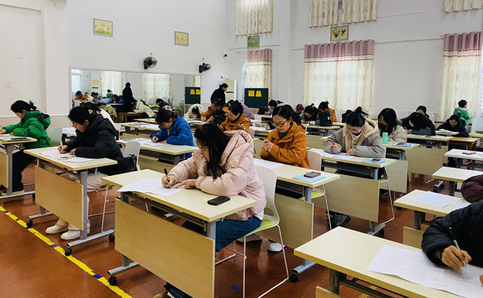 本次考核以闭卷形式进行,试题紧扣《指南》语言领域核心要求,聚焦 "倾听与表达"" 阅读与书写准备 "两大子领域。考查教师对基础理论的记忆精度,也注重其对年龄阶段目标的精准把握。考场上,教师们专注审题、认真作答,严格遵守考核纪律,展现了良好的学习风貌。