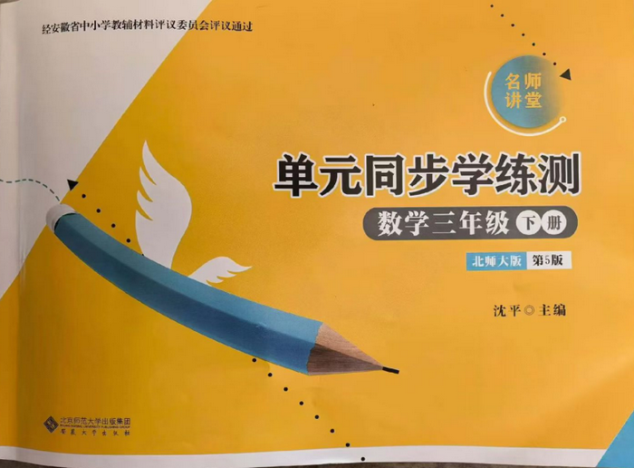 近日,由舒城县教研室组织,城关三小骨干教师及田海燕工作室核心成员深度参与编写的《单元同步学练测·数学三年级下册(北师大版第5版)》,经安徽省中小学教辅材料评议通过,正式出版发行。