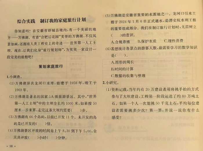 城关三小诸多名师及工作室成员全程参与,充分发挥专业特长,积极参与编写,将多年教学经验与教材内容深度融合,对标最新课程课念,关注活动经验积累,从儿童视角出发,让习题设计立足生活情境,有新意、有活力、有深度。其中,工作室成员吴雨薇老师的简笔画让图形与几何领域妙趣横生,程义勤老师把家乡特色、本土文化融入字里行间,带你走进万佛湖,让知识学习更接地气、更有温度,真正实现“从生活中来,到应用中去”。