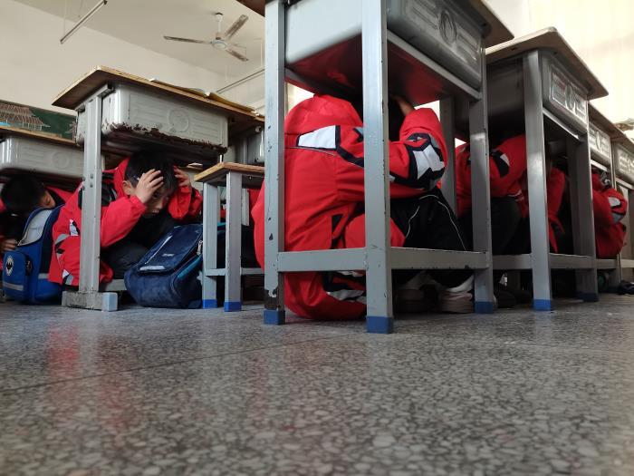 该校对学生的安全教育历来重视,此次活动制定了详细方案,由小学部分管安全工作的副校长任总指挥,各应急小组各司其职,责任到人。下午13:30,演练准时开始。随着第一次警报声响起,各小组人员快速到位,各班级老师立即告知学生“地震了,不要慌”,指挥学生紧急避险,要求学生迅速抱头钻到课桌下面,尽量蜷曲身体,降低身体重心。第二次警报响起,各班组织学生按照既定路线撤离到安全地带。整个地震逃生演练安全有序,无强行冲、挤等行为,同学们动作迅速,不吵闹,不慌乱。各班清点人数后由专人向总指挥报告人数,整个过程秩序井然,达到了预期效果。