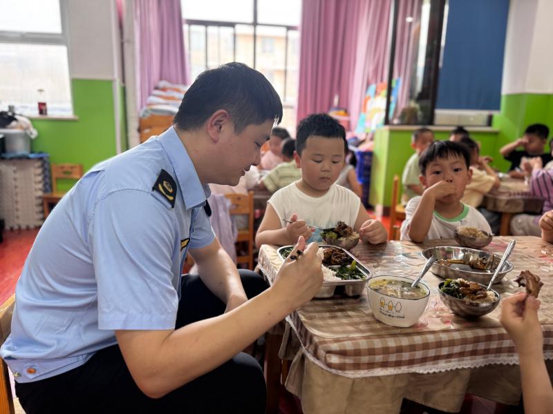 经济开发区市场监管所一行深入城关金墩幼儿园开展食品安全检查暨陪餐活动