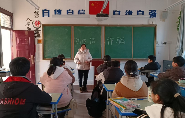 为切实提升学生防范电信网络诈骗的意识和能力,守护青少年身心健康与财产安全,构建平安和谐校园环境,1月22日,棠树乡中心学校各班级在班主任的组织下,统一开展了以“反诈防骗,青春护航”为主题的班会活动,为同学们上了一堂生动实用的反诈“必修课”。
