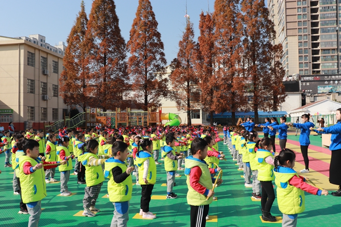 为增强幼儿体质、发展幼儿基本动作、锻炼幼儿意志、提高免疫能力,城关第二幼儿园于11月26日开展以“快乐早操 强身战‘疫’”为主题的早操评比活动。