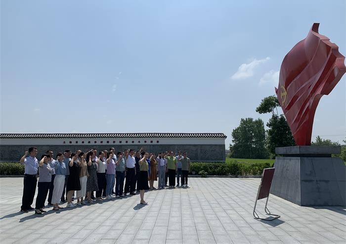 参观学习后,全体党员在纪念馆广场上,面对鲜红的党旗,举起右手庄严宣誓,重温入党誓词,铿锵豪迈的誓言使每一位党员干部仿佛回到了入党的那一刻,进一步坚定了立场信念。