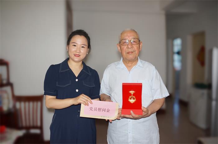 6月30日上午,受校党总支书记、校长李少云委托,总支副书记陶群、组织委员李家权登门慰问老党员李昌卢同志,颁发“光荣在党50年”纪念章,送上500元慰问金,也送去了党的关怀与厚爱,表达了对老党员多年工作成绩的认可和感谢,传递了组织对老党员的关心、爱护与牵挂。